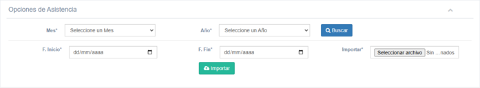 Aquí se configuran los parámetros para visualizar e importar asistencias. Los campos disponibles son: