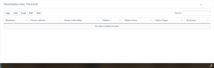 Esta tabla muestra el resumen de la asistencia del personal, con las siguientes columnas: