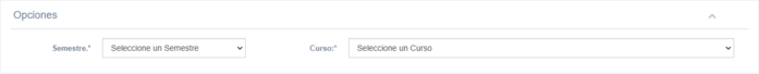 1. Opciones: Permite seleccionar el semestre y el curso para el cual se registrarán las referencias bibliográficas.