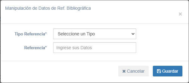 Este formulario permite agregar o editar una referencia bibliográfica. Los campos son: